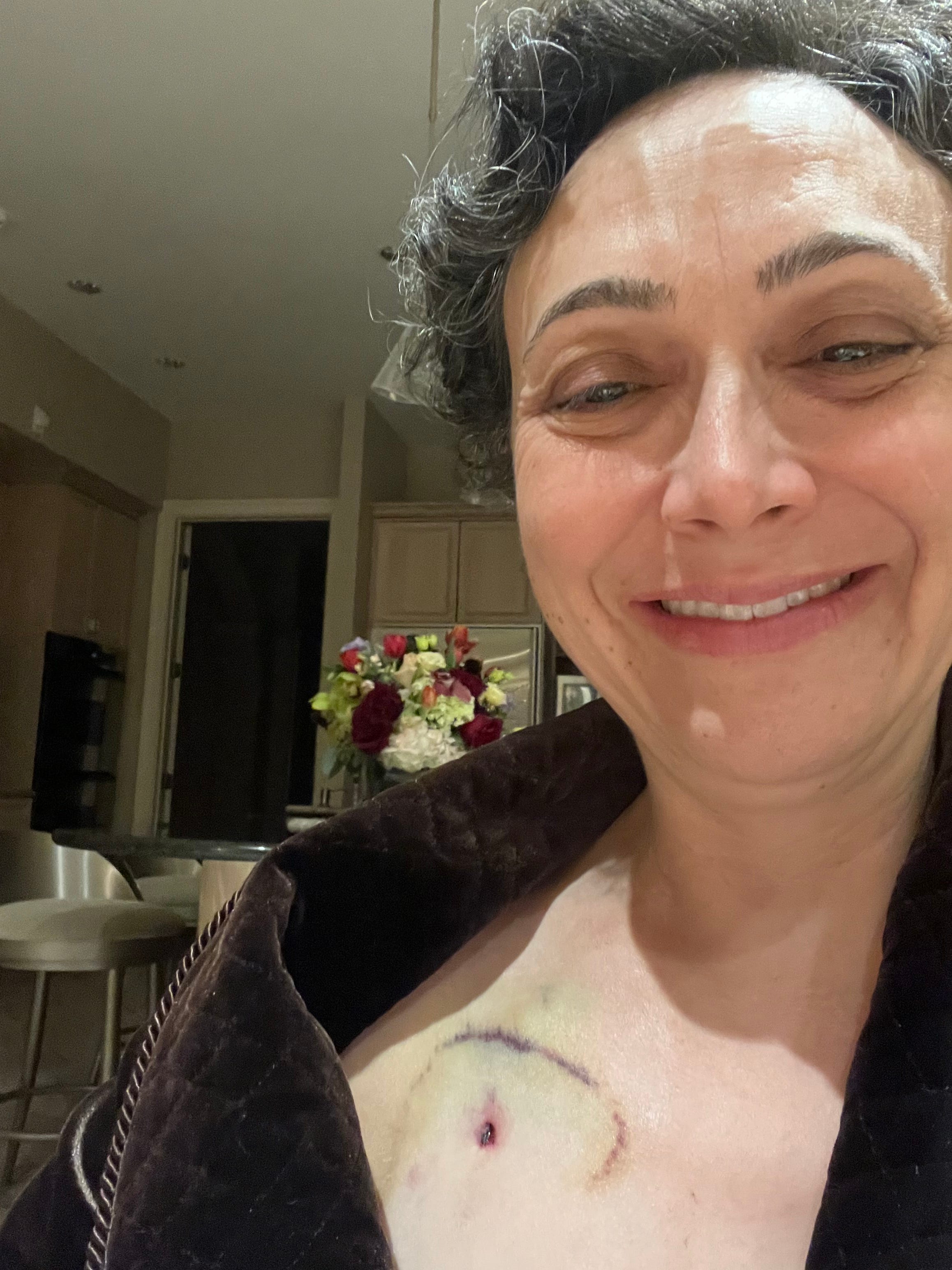 Once home, showering remained an ordeal. My catheter had to stay dry, covered carefully to prevent infection. Since the central line led directly to my heart, even a small amount of water could be life threatening. My bathing routine became methodical: rinsing my legs and left arm, covering my chest with a towel, then carefully washing my hair. I had previously showered daily, but during dialysis, I switched to every other day because the process was so tedious.